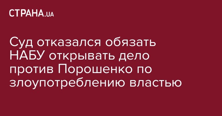 "Отказать в удовлетворении жалобы в части обязательства должностного лица Национального антикоррупционного бюро Украины, в компетенцию которого входит внесение сведений в Единый реестр досудебных расследований, внести в Единый реестр досудебных расследований сведения о совершении уголовного преступления в отношении президента Украины по ст. 364 УК Украины (злоупотребление властью или служебным положением, - прим. ред.)", - говорится в решении суда.