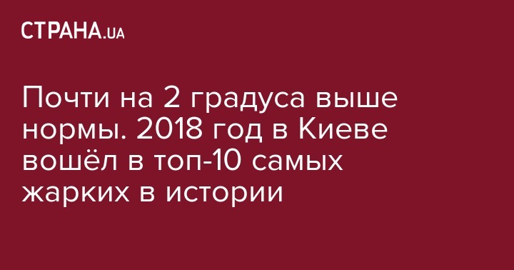 В Киеве среднегодовая температура в 2018 году составила +9,5°, что на 1,8° превышает климатическую норму. Минувший 2018 год поделил 7-8 место среди самых теплых лет с 1881 года (старт наблюдений - прим. ред.), сообщает пресс-служба Центральной геофизической обсерватории имени Бориса Срезневского.