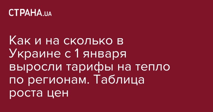 Как и на сколько в Украине с 1 января выросли тарифы на тепло по регионам. Таблица роста цен