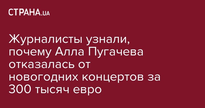 Представители певицы объясняли это тем, что Пугачева копит силы перед своим юбилейным концертом в Кремле. Традиционно, корпоративы являются одним из основных источников дохода артистов. Алла Борисовна отказалась выезжать из дома в новогоднюю ночь, несмотря на то, что ей предлагали 300 тысяч евро (около 9,5 млн грн) за одно выступление.