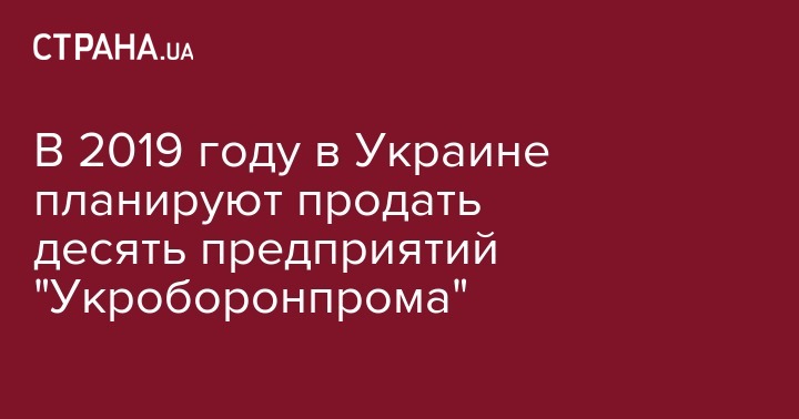 В 2019 году 10 предприятий государственного концерта "Укроборонпром" в рамках процесса приватизации малых объектов будут выставлены на продажу. Об этом сообщил глава Фонда государственного имущества Украины Виталий Трубаров на своей странице в Facebook.