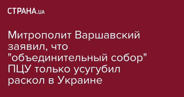 Митрополит Варшавский заявил, что "объединительный собор" ПЦУ только усугубил раскол в Украине