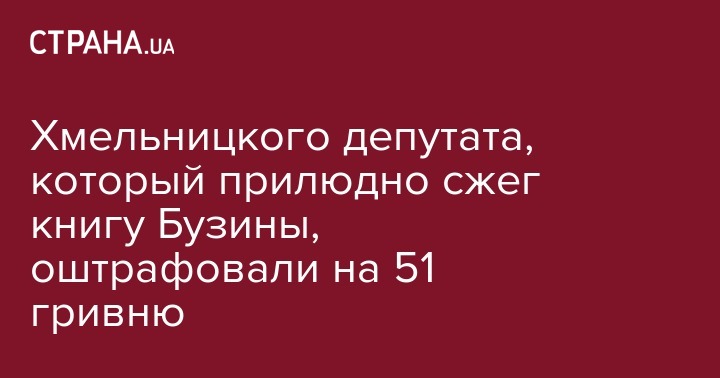 Хмельницкого депутата, который прилюдно сжег книгу Бузины, оштрафовали на 51 гривню