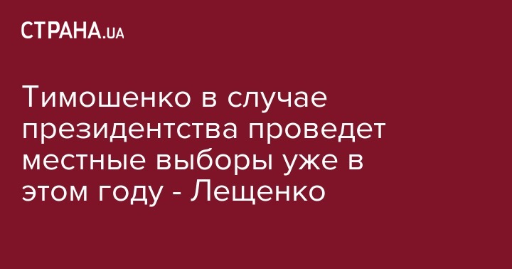 "Цель Тимошенко понятна - в случае избрания, президент некоторое время пользуется инерцией поддержки населения. И эту поддержку в интересах новоизбранного президента эффективно конвертировать, получив максимальное представительство не только в Верховной Раде, но и на уровне мэров, которые после реформы децентрализации стали намного более весомыми политическими фигурами", - пишет Лещенко.