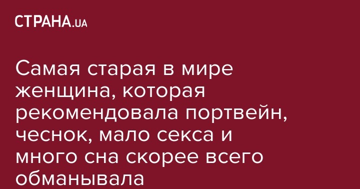 Самая старая в мире женщина, которая рекомендовала портвейн, чеснок, мало секса и много сна скорее всего обманывала