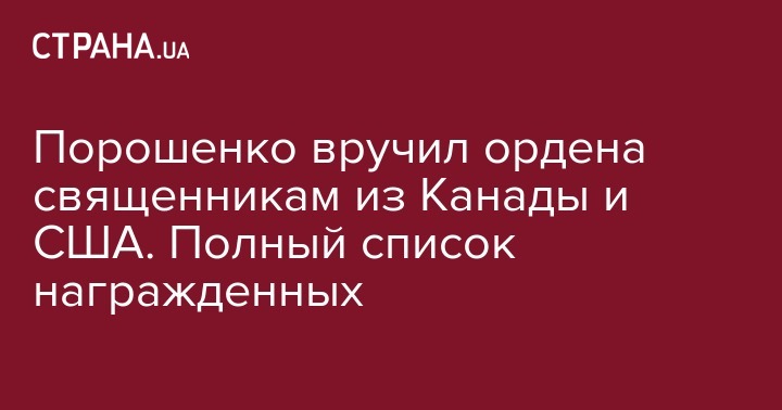 "Президент вручил награды за выдающуюся деятельность, направленную на укрепление авторитета православия в мире, утверждение идеалов духовности и милосердия, весомый личный вклад в развитие автокефальной поместной Православной церкви Украины", - говорится в сообщении пресс-службы, обнародованной в субботу вечером.