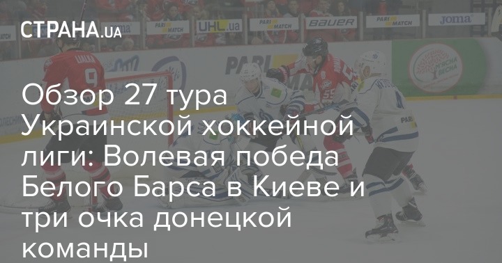 4 января завершился 27 тур Украинской хоккейной лиги - Пари-Матч, в рамках которого "Донбасс" в Дружковке обыграл МХК "Динамо", а "Белый Барс" добыл волевую победу над "Ледяными Волками".