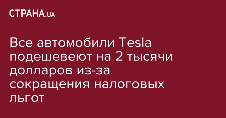 Компания Tesla приняла решение снизить цены на все свои автомобили на 2 тысячи долларов. Об этом со ссылкой на отчет компании пишет "Коммерсант"