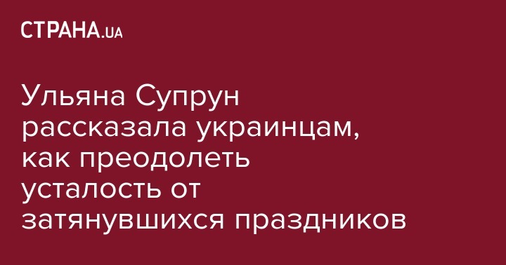 Организм человека реагирует усталостью, вялостью и раздражением не только на нагрузки на работе, но и на подготовку к праздникам и затянувшиеся торжества. Ко всему прочему негативное влияние на самочувствие оказывает короткий световой день, холод и даже переход на новый календарный год. Об этом на своей странице в соцсети написала и.о. министра здравоохранения Украины Ульяна Супрун.