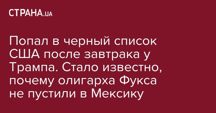 Украинский телеграм-канал Newsroom рассказал, почему Фукса могли не пустить в Мексику. По его данным, это произошло из-за ссоры олигарха с лоббистом Республиканской партии в США.