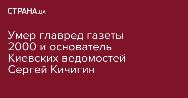Умер главред газеты 2000 и основатель Киевских ведомостей Сергей Кичигин