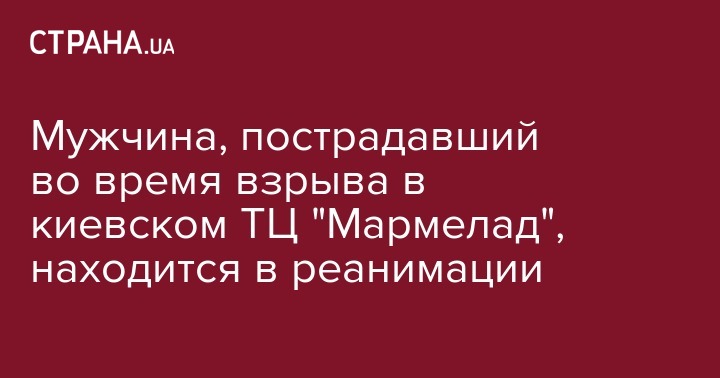 Мужчина, 12 января пострадавший от взрыва в ТЦ "Мармелад" на улице Борщаговской в Киеве, находится в реанимации. Об этом со ссылкой на пресс-службу полиции Киева передает УНН