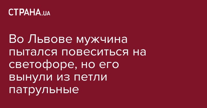 Сообщается, что мужчину спасли патрульные, проезжавшие неподалеку. "По ул. Городоцкой (площадь Кропивницкая, на светофоре повесился мужчина на шнурке. Простые люди его начали быстро снимать. В ту минуту как раз проезжал патруль, который его полноценно снял и отправил примерно 50-летнего мужчину на Кульпарковскую, в больницу - жив", - написал он.