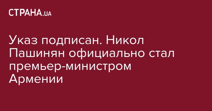 В понедельник, 14 января, президент Армении Армен Саргсян подписал указ о назначении Никола Пашиняна премьер-министром страны. Об этом сказано в указе, опубликованном на сайте главы республики.