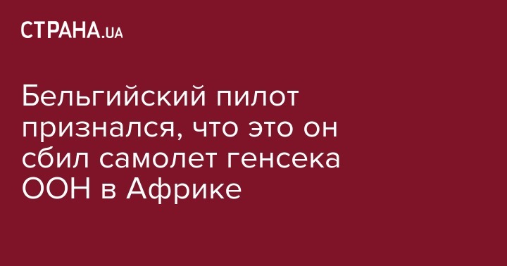 Летчик с Бельгии Ян Ван Риссегем признался в том, что командовал истребителем, который сбил в 1961 году над Африкой самолет с тогдашним генсеком ООН Дагом Хаммаршельдом. Об этом сообщает газета De Morgen.