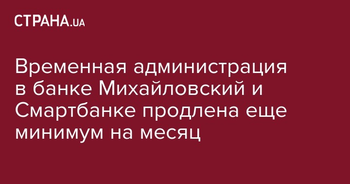 Как сообщается на веб-сайте ФГВФЛ, временная администрация в банке "Михайловский" продлена до 22 июля, временная администрация в Смартбанке - до 24 июля.
