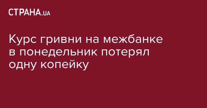 Курс гривни на межбанковском валютном рынке в понедельник снизился до 28,07 грн/$1 с 28,06 грн/$1 в предыдущий рабочий день, сообщили агентству "Интерфакс-Украина" дилеры коммерческих банков.