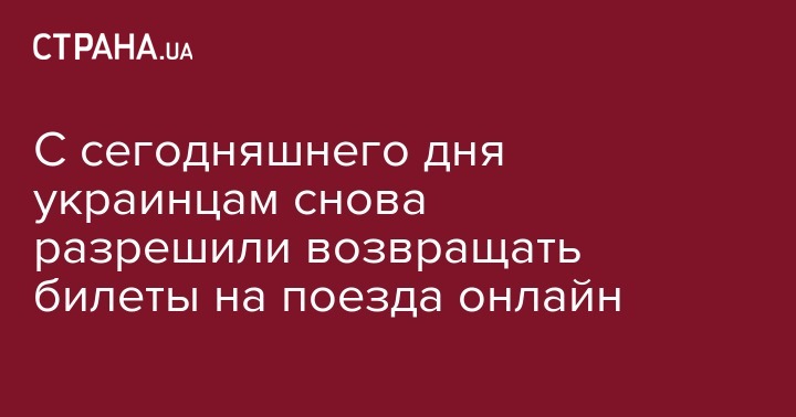 Со вторника, 15 января, украинцы смогут снова возвращать билеты через сайт "Укрзализныци" по продаже проездных документов, а также мобильную его версию и мобильные приложения. Об этом сообщает пресс-служба компании