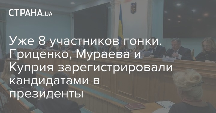 Уже 8 участников гонки. Гриценко, Мураева и Куприя зарегистрировали кандидатами в президенты