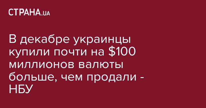В декабре украинцы купили почти на $100 миллионов валюты больше, чем продали - НБУ