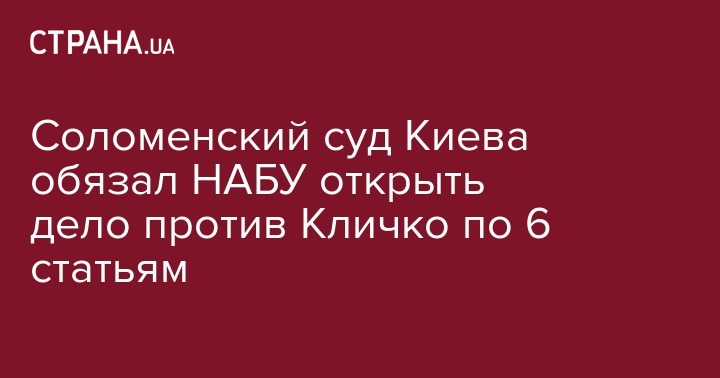 Соломенский районный суд Киева обязал Национальное антикоррупционное бюро (НАБУ) открыть уголовное производство по факту злоупотребления властью или служебным положением, а также содействия участникам ОПГ мэром Киева и главой Киевской государственной администрации (КГГА) Виталием Кличко.