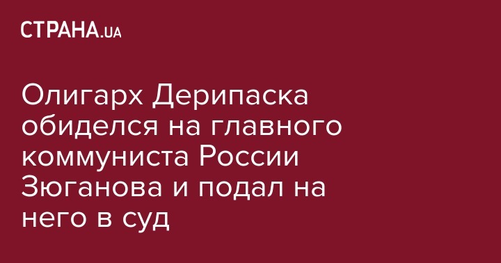 Российский олигарх Олег Дерипаска подал иск в суд Москвы о взыскании с главы КПРФ Геннадия Зюганова компенсации морального вреда в размере 1 млн рублей за "оскорбительное и недопустимое" высказывание.