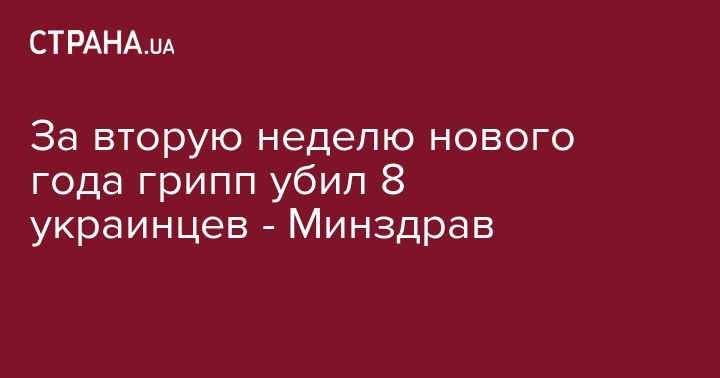 В Украине за вторую неделю 2019 года в результате осложнений, обусловленных гриппом, умерли восемь человек, а всего с начала этого эпидсезона - 19 человек. Об этом сегодня сообщила пресс-служба Минздрава.