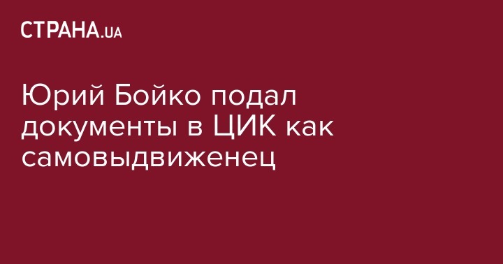 Один из основателей "Оппозиционной платформы - За жизнь", народный депутат Юрий Бойко подал в ЦИК документы для регистрации кандидатом в президенты Украины.