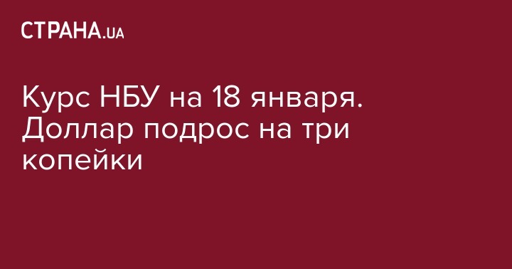 На 18 января 2019 года Нацбанк установил официальный курс доллара к гривне на уровне 28,03 грн/доллар, что на 3 копейки выше по сравнению с предыдущим банковским днем. Об этом свидетельствуют данные на сайте регулятора.