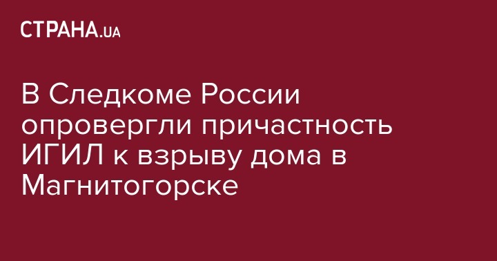 После того, как в ИГИЛ взяли на себя ответственность за взрыв жилой многоэтажки в российском Магнитогорске, Следственный комитет РФ сделал официальное заявление. В ведомстве заверили, что ИГИЛ не причастна к взрыву. Приоритетной остается версия взрыва газа, сообщила официальный представитель Следственного комитета Светлана Петренко. Об этом сообщает "Интерфакс".