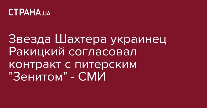 Защитник донецкого "Шахтера" Ярослав Ракицкий согласовал контракт с питерским "Зенитом". Об этом сообщает спортивное издание Tribuna.com.