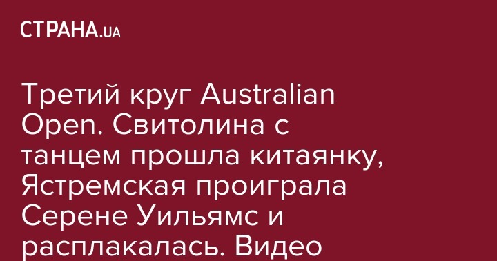 Третий круг Australian Open. Свитолина с танцем прошла китаянку, Ястремская проиграла Серене Уильямс и расплакалась. Видео