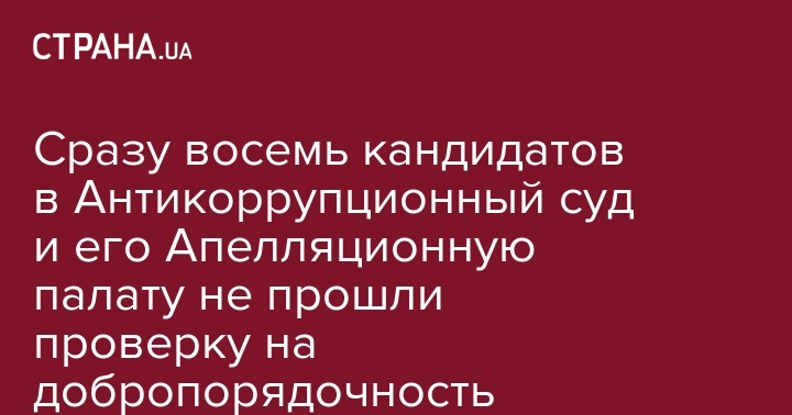 Сразу восемь кандидатов в Антикоррупционный суд и его Апелляционную палату не прошли проверку на добропорядочность