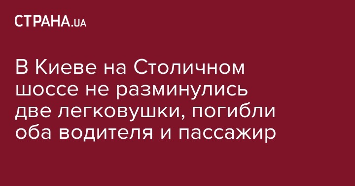 Три человека погибли в результате лобового столкновения автомобилей, которое произошло в Голосеевском районе Киева. Уточняется, что не разминулись два автомобиля - "Таврия" и Volkswagen. После удара они оба превратились в груду металла. Об этом сообщается на сайте ГУ Нацполиции Киева.