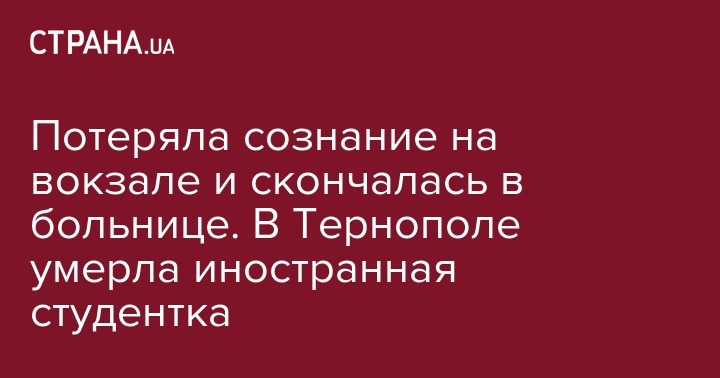 В понедельник, 21 января, на тернопольском железнодорожном вокзале нашли 25-летнюю иностранную студентку, которая была без сознания. В ночь на 22 января она скончалась в местной больнице. Об этом сообщает Отдел коммуникации ГУ НП в Тернопольской области.