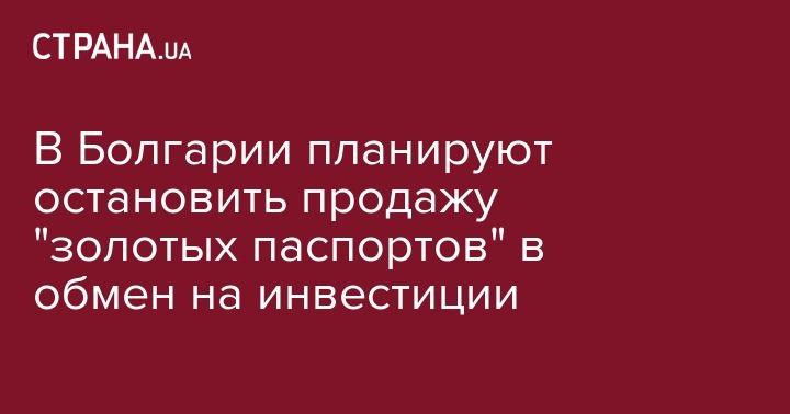 "Болгария планирует остановить продажу гражданства за инвестиции состоятельных иностранцев", - говорится в сообщении.