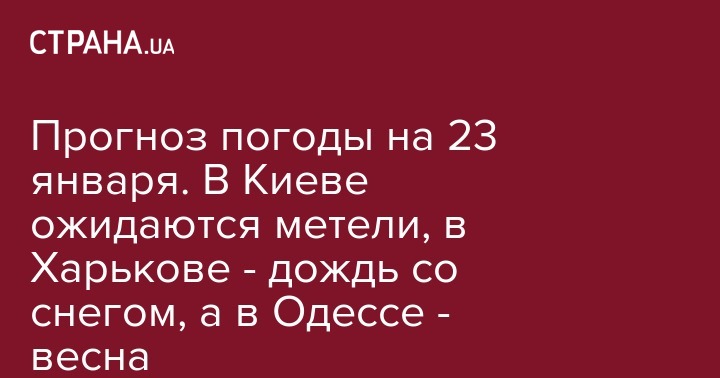 В среду, 23 января, Украину накроют снегопады. И если в восточных областях снег пройдет вместе с дождем, то центральные и северные регионы ожидают настоящие метели. Об этом свидетельствует прогноз, опубликованный на сайте Укргидрометцентра