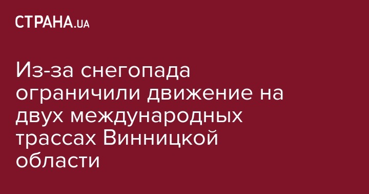 В среду, 23 января, в связи со снегопадами временное ограничение движения для большегрузных транспортных средств введено на двух трассах международного значения в Винницкой области. Как сообщается на официальном сайте ГСЧС, речь идет о трассах М-12 "Стрый - Знаменка" (на участке между городами Немиров и Гайсин) и М-21 "Выступовичи - Могилев-Подольский" (на участке между городами Жмеринка и Могилев-Подольский).