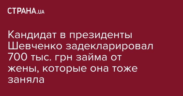 На банковских счетах у Шевченко имеется 125 тыс. гривен в "Райффайзен Банке Аваль" и 127 тыс. гривен в Приватбанке, 155 тыс. долларов наличными, а также он дал в долг 1,6 млн гривен компании "Галичина-Сахар", принадлежащей гражданской жене.