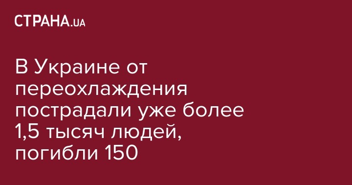 С 12 декабря 2018 года в Украине от переохлаждения пострадали 1650 человек. От холода умерло 150 людей. Только в течение 22 января от переохлаждения и обморожений пострадали 50 украинцев, 47 из них госпитализированы.