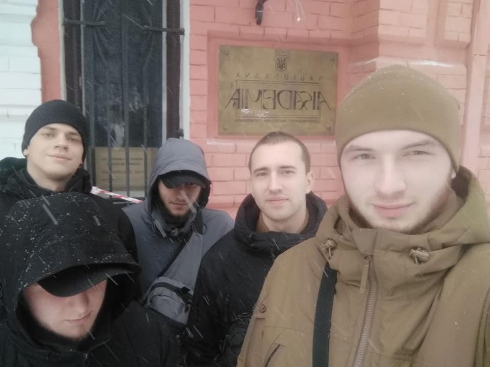 По словам Бондаря, члены С14 пришли в Академию изобразительного искусства, чтобы увидеть, как этого учащегося-переселенца отчисляют.