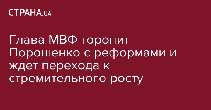 "Я подтвердила, что МВФ готов и впредь поддерживать Украину вместе с другими международными партнерами в ее усилиях по проведению реформ под руководством президента Порошенко, – говорится в заявлении. - Я также подчеркнула настоятельную необходимость для Украины ускорить реформы и перейти к более стремительному росту, который необходим для повышения уровня жизни граждан".