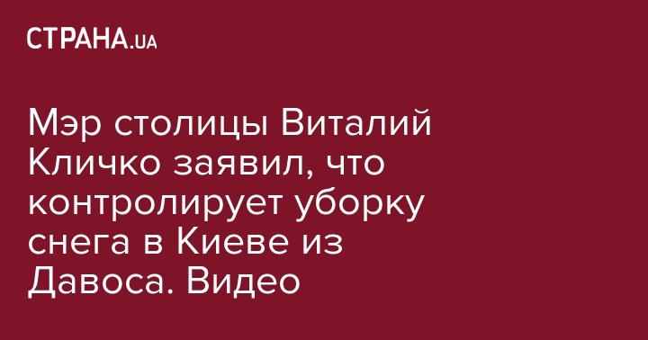 Мэр Киева Виталий Кличко следит за уборкой снега в украинской столице даже находясь на экономическом форуме в швейцарском Давосе. Об этом он сказал в эксклюзивном комментарии корреспонденту телеканала NEWSONE.