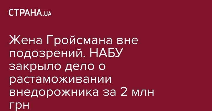 Национальное антикоррупционное бюро (НАБУ) закрыло уголовное производство по факту неуплаты 600 тыс. гривен при растаможивании женой премьер-министра Владимира Гройсмана Еленой внедорожника Mercedes в 2017 году.