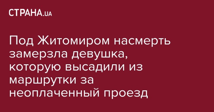 В Житомирской области насмерть замерзла 21-летняя девушка, которую ранним утром за два километра от ближайшего населенного пункта высадили из маршрутки, так как она не смогла заплатить за проезд. Об этом сообщает Житомир.info