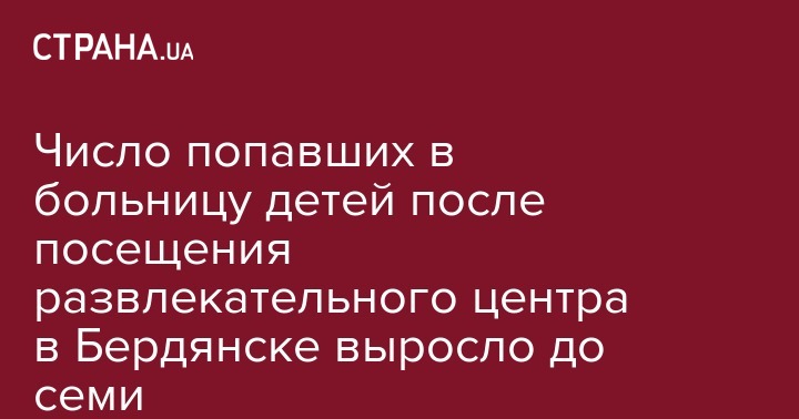 Количество детей, заболевших острой кишечной инфекцией после посещения центра "Джамп Сити" в г.Бердянск Запорожской области, возросло до семи человек, сообщают в Главном управлении Национальной полиции в Запорожской области