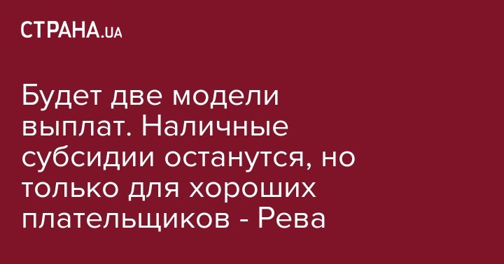 Будет две модели выплат. Наличные субсидии останутся, но только для хороших плательщиков - Рева