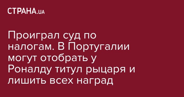 Проиграл суд по налогам. В Португалии могут отобрать у Роналду титул рыцаря и лишить всех наград