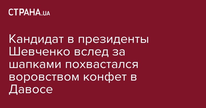 Кандидат в президенты Шевченко вслед за шапками похвастался воровством конфет в Давосе
