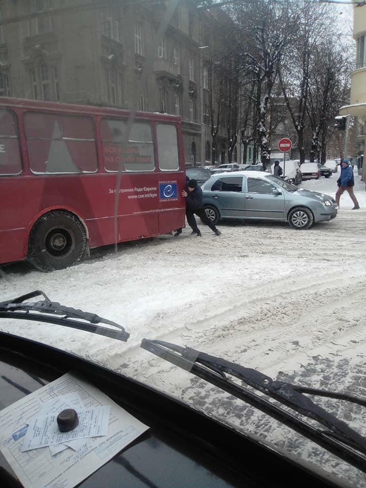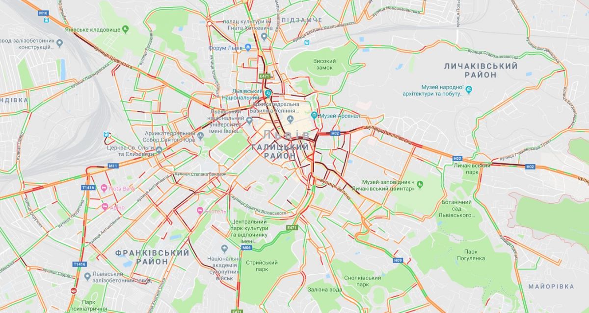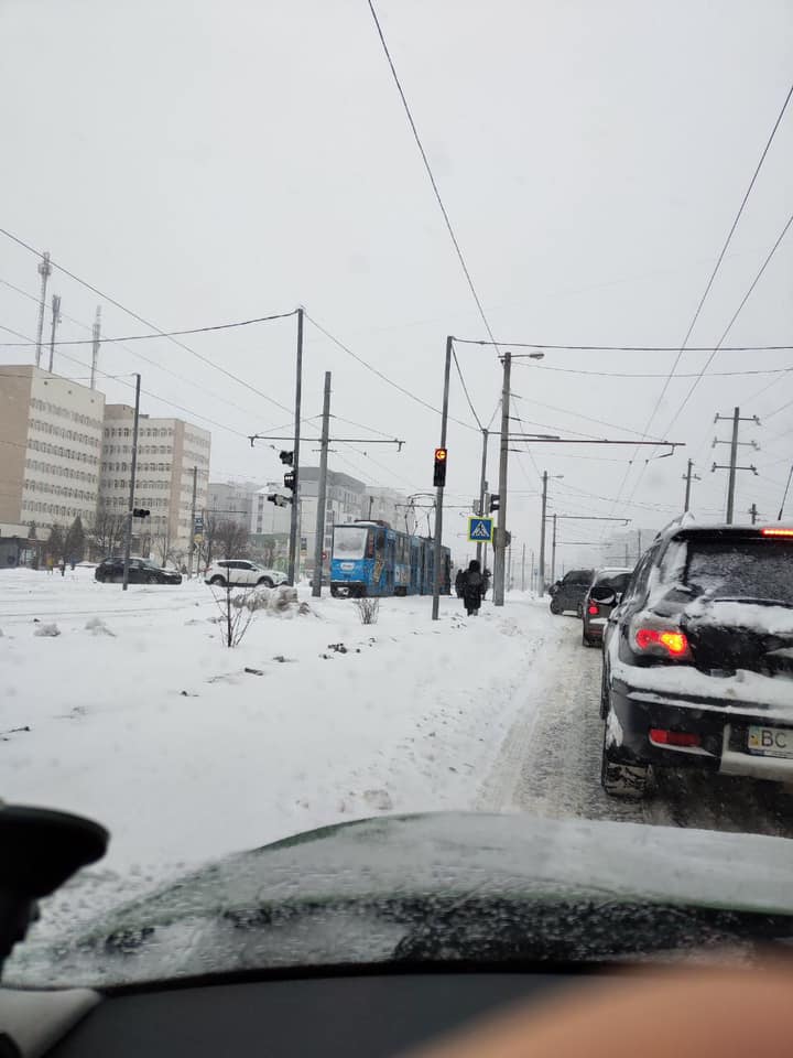 По данным сервиса "Google-карты", особенно крупные заторы образовались в Галицком районе города. Местный горсовет сообщает о 20% от месячной нормы снега, который выпал всего за одни сутки.  Это - 9,1 миллиметра осадков. Прирост снега составил 4 сантиметра.